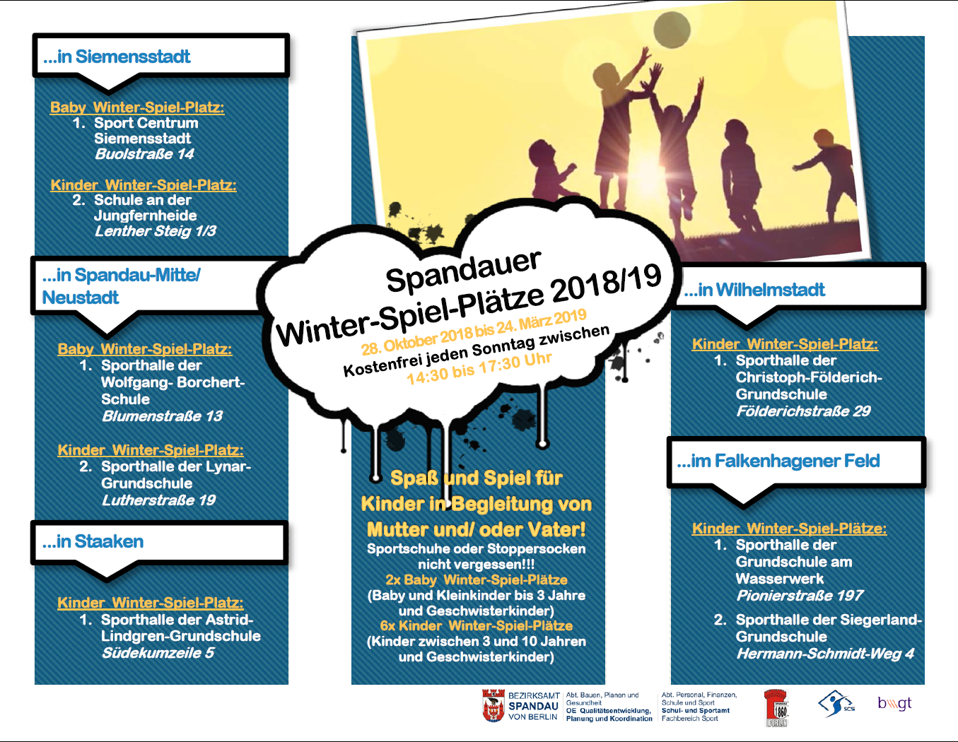 Im Bezirk Spandau bieten wir für Familien auch in diesem Jahr Baby-Winterspielplätze sowie Kinder-Winterspielplätze!
